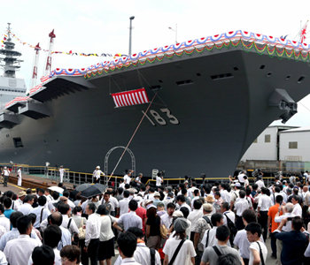 일본 해상자위대의 전투함 중 최대 규모인 호위함 이즈모가 25일 취역한다. 헬기 탑재가 가능한 이즈모는 갑판을 개조하면 수직 이착륙 전투기까지 실을 수 있어 사실상 항공모함 역할을 수행할 수 있다. 군사 전문가들은 중국과 일본이 경쟁적으로 해군력 강화에 나서면서 동북아 군비경쟁이 가열될 것을 우려하고 있다.
