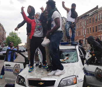 暴動は、警察に連行される途中に負傷して死亡した黒人のプレディ・グレイさん(25)の葬儀が終わった後、黒人住民らの一部が街に出て暴徒化した。暴徒らは警察官の暴力に抗議し、「司法正義」を叫んで警官隊に石やレンガなどを投げ、激しく抵抗した。辺りが暗くなると、暴徒らは近隣の建物を放火し、略奪が起こった。暴徒の一部は、商店やATM機を襲い、パトカーを壊した。市内2ヵ所では放火によると見られる火災も発生した。鎮圧の過程で、警察官15人も投石を受けて負傷し、このうち1人は昏睡状態だという。