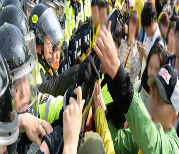 メーデーの1日、デモ隊2000人(警察試算)が大統領府に向かって練り歩こうとしたが、ソウル鐘路区安国洞(チョンノグ・アングクドン)の交差点で警察と衝突し、徹夜で対峙した。デモ隊500人は警察の解散命令に応じず、2日午前2時半ごろ、警察によって歩道のほうに押し出され始めた。警察による強制解散の末、同日午前3時40分ごろ、周辺車線の統制が解除された。しかし、デモ隊約80人は同日昼ごろまで、安国洞の豊文(プンムン)女子高校前の道路の一部を占拠し、違法デモを続けた。