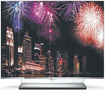 LG電子は最近、主要家電売り場でOLEDテレビをワイヤで天井とつないで、空中に浮かせて展示している。薄いので55インチのOLEDテレビの重さは、約14キロに過ぎない。
