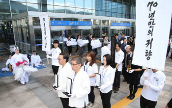 推進委一行は近くのスミル公園に移動し、犠牲者の魂を弔う鎮魂祭を行った。ここは、強制徴用朝鮮人が日本行きの関釜連絡船に乗った場所だ。これに先立ち、推進委は11日、遺骨が集められた北海道深川市のある寺院から帰郷のための旅に発った。北海道のいくつかの地域を経て14日に東京に到着した後、京都や広島を経由して釜山に戻った。当時、朝鮮人が連れて行かれた約3500キロの逆の旅程だ。