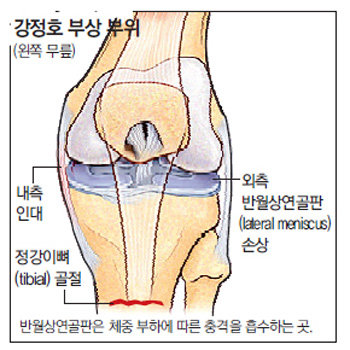 サッカー韓国代表の主治医を経験したソウルJS病院のソン・ジュンソプ院長は、「幸いに内側ではなく外側なので後遺症はなさそうだ。内側軟骨板は体重をより重く受ける部位なので、後から関節炎をきたす可能性があるが、外側はその可能性は少ない」と話した。また「早期に、すぐ手術が行われ、引き裂かれた軟骨を縫合したから、手術結果も楽観できそうだ。損傷した軟骨は手術が早いほど、回復が早い」と加えた。野球では珍しい怪我だが、選手同士の衝突が多いサッカーではよく怪我する部位だ。朴智星(パク・チソン)は2003年と2007年に右膝の内側半月状軟骨版の除去や再生手術を受けている。朴智星は引退後に、膝の痛みを堪えながらプレーしていたと告白している。