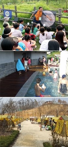 江東グリーンウェイキャンプ場は、江東区ハブ公園の南側にある。昨年、23面を追加して計80面を利用できる。8面はオートキャンプ場、残りは家族キャンプ場となっている。4月からは、キャンプ場管理事務所の後ろの「ヒバリ幼児森の体験場」を利用でき、夜はハーブ公園で星座観測ができる。1面当たりの利用料は2万ウォン(オートキャンプ場は2万1000ウォン)。