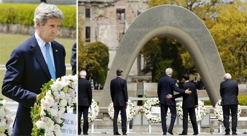 ケリー長官は、「平和の重要性、世界をより安全にする強い同盟の重要性を強調し、究極的には世界で大量破壊兵器をなくすことを希望する瞬間だ」と訪問の意義を説明した。また岸田外相に、「過去を振り返り、倒れていった人々を礼遇するが、今回の訪問は、過去についてのものではない」とし、「現在と未来のためだ」と強調した。今回の訪問が、米国の原爆投下に対する謝罪の意味ではないことを強調したのだ。岸田外相は、「核兵器のない世界に向かう歴史的一歩」と述べた。