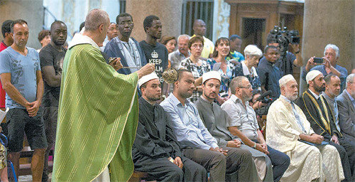 지난달 31일 열린 미사는 이곳에서 불과 8km 떨어진 생테티엔뒤루브레 성당에서 지난주 무슬림 테러범들에게 잔인하게 살해된 자크 아멜 신부를 추모하는 특별미사로 진행됐다. 미사에는 가톨릭 신자 2000여 명 외에도 무슬림 신자 100여 명이 함께했다. 그들은 ‘모두에게 증오 대신 사랑을’이라고 적힌 플래카드를 손에 들고 종교 간 화합을 강조했다.