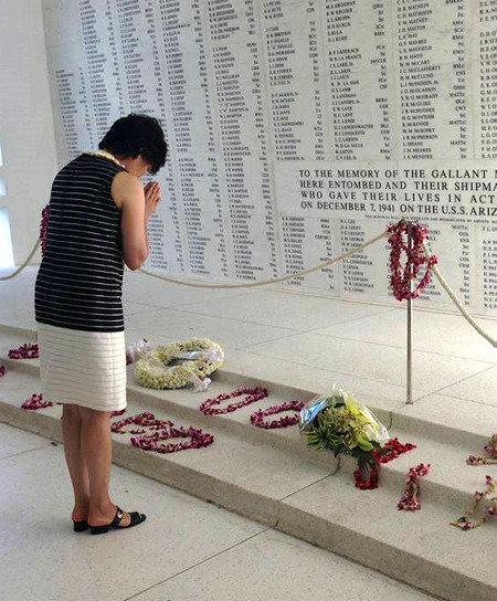 昭恵さんは、訪問の写真をフェイスブックに投稿し、「真珠湾のアリゾナ記念館にて、お花と祈りを捧げました」と書き込んだ。日本のウェブマガジン「現代ビジネス」は、昭恵さんが記念館を訪問した後、「ここで2400名もの人命が失われたんですね。記念館に展示された様々な資料を見て、改めて『パールハーバー』がアメリカの人々にとってどのような意味を持つのかを知り、胸を痛めました」と話したと伝えた。