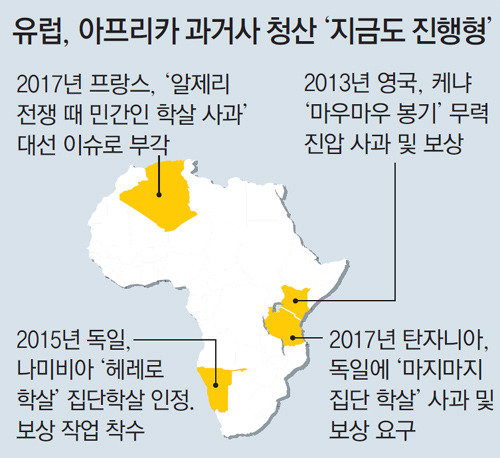 영국 정부도 2013년 처음으로 1950년대 케냐에서 벌어진 ‘마우마우 봉기’를 무력 진압한 것에 사과하며 케냐인 5228명에게 1990만 파운드(약 280억 원)를 보상했다. 이후 후손 4만 명이 보상을 요구해 소송 중이다. 프랑스는 에마뉘엘 마크롱 후보가 최근 132년간의 알제리 식민 통치 시절 민간인 학살에 대해 사과의 뜻을 밝혔다가 우파 진영으로부터 국가정체성이 모호하다는 비판을 받는 등 유럽 국가 모두 식민 시절 과거사 청산은 현재도 ‘뜨거운 감자’다. 이미 100년이 훌쩍 넘은 일이지만 역사는 쉽게 지워지지 않고 꼬리표처럼 따라다니고 있는 셈이다.
