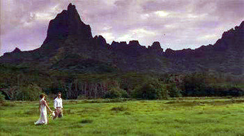 『めぐり逢い(Love affair)』:カリフォルニアからオーストラリアに向かった旅客機が暴風雨でひどく揺れた。位置は南太平洋の上空。離れ島に不時着し、乗客はロシアの船で隣の大きな島に移った。そこがタヒチだ。隣の座席に座って愛に落ちた男女。男は近所のモオレア島の親戚に女を連れていく。そこは天国のように美しい山の中の草原。居間で親戚の女性はピアノを演奏する。エンニオ・モリコーネ作曲のこの映画『めぐり逢い(Love affair)』OST「Finding Each Other Again」だ。