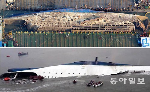 3年間、海中に沈んでいたセウォル号は、ところどころにさび付いて亀裂があり、白いペイントの相当部分はがれた状態だった。鮮明だった「SEWOL」という船名も肉眼では確認できなかった。現場海域近くで引き揚げ作業を心配して見守っていた犠牲者の家族らは、船体を見て短い嘆息を漏らした。