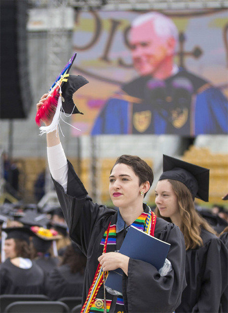 워싱턴포스트(WP)에 따르면 펜스 부통령은 21일(현지 시간) 인디애나 주의 가톨릭계 학교 노터데임대 졸업식에서 연설했다. 본래 이 대학은 신임 대통령이 취임한 해 졸업식엔 대통령을 연사로 부르는 전통이 있지만 학생과 교직원들의 반발이 거센 탓에 도널드 트럼프 대통령은 초청되지 못했다. 학교 측은 인디애나 주지사를 지낸 펜스 부통령에게 졸업식 연설을 해달라고 초청했다.