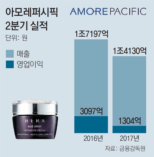 アモーレパシフィックグループは、今年第2四半期の売上高は1兆4130億ウォン、営業利益は1304億ウォンと集計されたと、26日公示した。前年同期よりそれぞれ17.8%と57.9%減った数値だ。昨年上半期(1~6月)は売上高が3兆4790億ウォン、営業利益が7288億ウォンで、半期実績としては史上最高値を記録した。