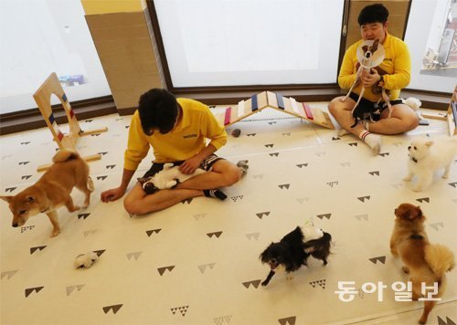全国的に800~900と推定される愛犬ホテル(愛犬カフェ、ペットを預かる動物病院も含む)はますます高級化する傾向だ。同日訪れた江南区の愛犬ホテル「ガラリア」のロビーは、小型犬と中型犬が飛び回り、足の踏み場がなかった。1泊5万ウォンのスタンダードルームから日当たりの良い最高級スイートルーム(10万ウォン)まで13の部屋がすでに満室だった。飼い主がいつでも犬を見ることができるよう各部屋にカメラがついている。