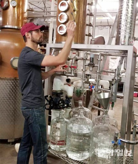 28日、ニューヨーク・ブルックリンのバン・ブラント醸造所。入口からやや甘いお酒の熟する臭いが漂ってきた。暗い醸造所では、サウスカロライナ州出身のブランドン・ヒル氏が、赤銅色の酒造機から透明な酒を取り出していた。80度の焼酎原液だった。匂いだけをかいだだけなのに、酒気が広がり始めた。ヒル氏は、ハワイ大学で分子生物学を専攻し、2011年のウサギ年に韓国で焼酎の仕込み方を学んだ。韓国の伝統的焼酎製造技術に米国の醸造科学を応用して、ブルックリンの醸造所で、昨年「ウサギ焼酎」を披露した。ヒル氏は、「砂糖や化学添加物を入れずに韓国の小麦畑で培養して持ち込んだ麹とブルックリンの酵母、カリフォルニア産オーガニックのもち米で作る」とし、「韓国伝統酎の醍醐味を米国に紹介したかった」と話した。