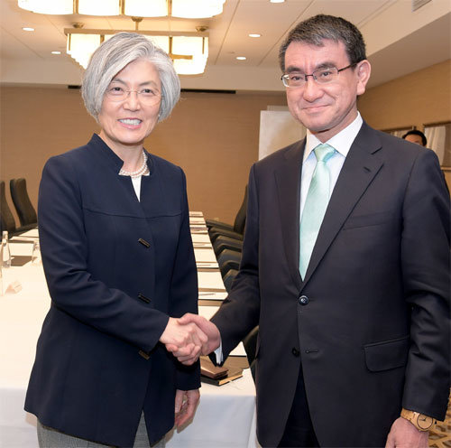 康京和(カン・ギョンファ)外交部長官が日本の河野太郎外相と会って、日中韓3国首脳会議の早期開催に向けて緊密に協力することで合意した。