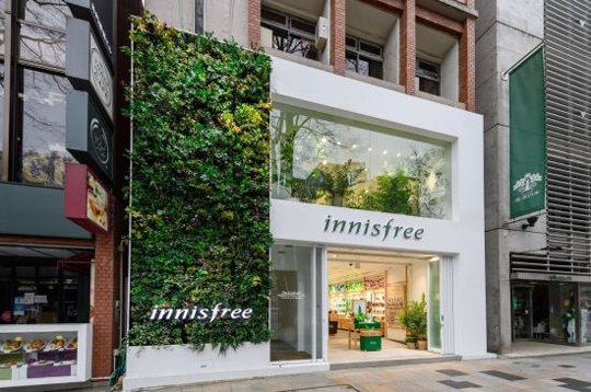 店は計2階、専用面積185.6平方メートル規模で、ファッションビューティーの中心地である東京表参道通りに位置している。建物の外壁は緑の植物で満たして、イニスフリーが求めている環境にやさしいグリーンライフを強調した。イニスフリーのベストセラーであり、最近披露した「グリーンティーシードセラム」をはじめ、済州(チェジュ)の原料で作られた製品を見ることができる。これと共に日本消費者の好みを攻略した現地適合型商品もお目見えする予定だ。
