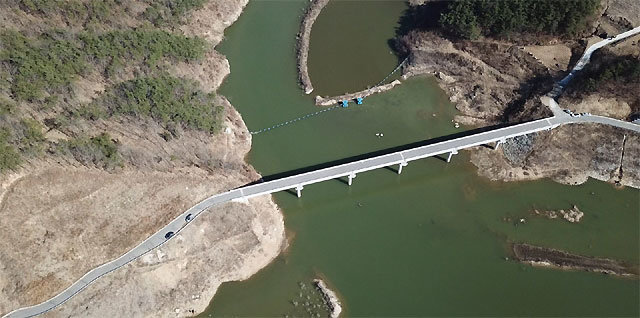 「ダム」といわれれば、人は当然水門から吹き出てくる巨大な水流を考えがちである。しかし、20日訪れた慶尚北道栄州市(キョンサンブクド・ヨンジュシ)にある栄州ダムの姿は違っていた。ダム構造物の近くを除けば底があらわになり、ところどころに水たまりだけが見えた。水に浮かんでいるはずの赤いブイは、乾いた底で転がっていた。船をつけるために作られた小さな船着場は、ひびの入った土のダム底に置かれていた。