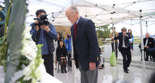 白髪の退役軍人が感激に浸った。がっしりした体格に落ち着いた声は90歳に迫る年齢を忘れさせる。6日午前10時30分、慶尚南道巨済市(キョンサンナムド・コジェシ)の巨済捕虜収容所遺跡公園の興南(フンナム)撤収作戦記念碑の前に立ったバリー・スミスさん(89・予備役大尉)。