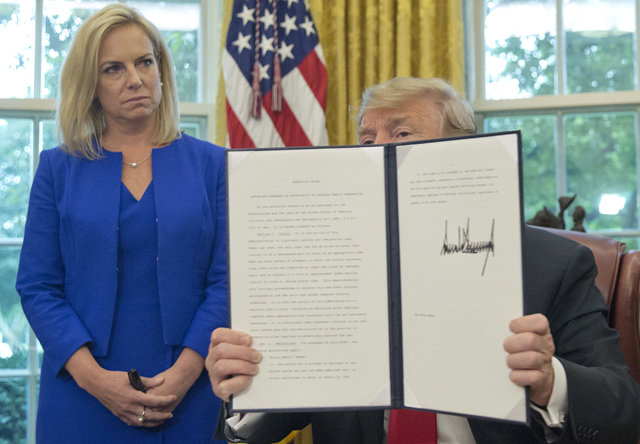 CNNなどによると、トランプ氏はホワイトハウスで20日、子どもと親が収容施設で一緒にいられるようにする内容の大統領令に署名した。トランプ氏は署名式で、「この大統領令は不法入国者でも家族が一緒に過ごせるための措置であると同時に、非常に強力な国境を確実にする」とし、「家族が離れている姿は良くなかった」と撤回の理由を説明した。これで親と未成年の子どもを引き離して収容する政策は、施行1ヵ月あまりで廃止された。トランプ政府が先月初めにこの政策を施行し、未成年者1995人が親と引き離されて保護施設で生活しているという。