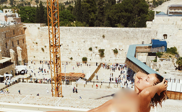 世界の名所を回ってヌード写真を撮ってきたマリサ・パッペンさん(26)は先月23日、嘆きの壁が見下ろせる建物の屋上で裸で椅子に座って日光浴をする写真を撮った。イスラエル国旗を掲げた棒に登る写真や建物の屋上でモスク(イスラム寺院)などエルサレムの都心を見下ろす写真などと共に自身のホームページやソーシャル・ネットワーク・サービス(SNS)に投稿した。パッペンさんはホームページに、「自由がますます贅沢になる世の中で、私の個人的な宗教である自由を見せたかった。私は宗教と政治の境界を押し出したい」と明らかにした。