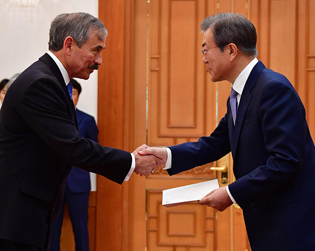 文在寅(ムン・ジェイン)大統領は25日、大統領府接見室でハリス駐韓米国大使と初めて公式に面会し、「安東焼酎会合」を提案した。文大統領は同日、ハリス氏を含め5ヵ国の駐韓大使から派遣国の首脳たちが送った信任状を受け取った。