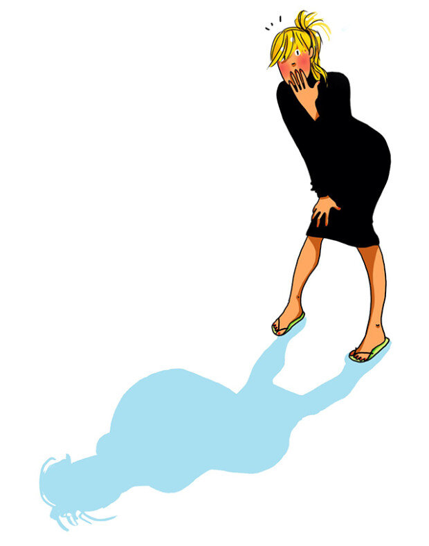 「なんでよ、私が妊娠だなんて!これからはぶくぶく太ることだけが残っている!…さようなら、ビキニよ!セクシー?ビーチ?すべて終わりだね」(「妊娠!簡単なことではなかったね」より)