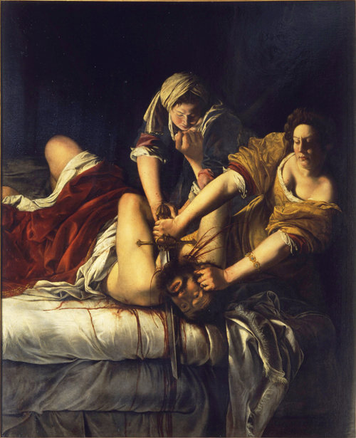 17世紀は、女性が画家として活動すること自体が難しい時代だった。画家の父親を持ったおかげで、彼女は早くから才能が認められ、画家になった。しかし19歳の時、絵の師匠であり、父の同僚だったアゴスティーノ・タッシに暴行された。この事件は異例にローマ法廷まで行き、被害者だったジェンティレスキは寧ろ、屈辱的な婦人科の検査を受けなければならなかった。また、自分の主張が虚偽の事実でないことの確認を受けるために、激しい拷問まで受けた。結局、タッシは有罪判決を受けたが、ローマから追放されただけで、再び以前のように作品活動を行った。これに憤慨したジェンティレスキは、聖書の中のユディトの物語を描いて、自分ならではのやり方で復讐した。ユディトの顔には自分を、敵将の顔にはタッシの顔を描きいれた。ユディトは敵将のホロフェルネスを誘惑して彼の首を斬り、民族を救ったイスラエルの英雄だ。ジェンティレスキは裁判の途中にこのテーマを描きはじめ、数年後もいくつかのバージョンで繰り返して描いた。時間が経った後も、まだひどい記憶として残っている自分の傷とタッシの犯罪事実を、そのように継続的に世の中に伝えた。