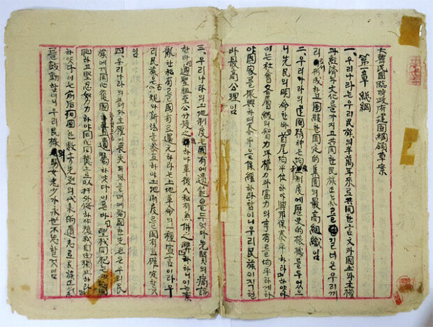 1948年に制定された憲法の根幹と評価される「大韓民国臨時政府建国綱領草案」が文化財に登録される。