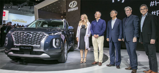 28日(現地時間)、現代自動車は、米ロサンゼルス(LA)のコンベンションセンターで開かれた「2018LAオートショー」で、8人乗りの大型フラッグシップ(旗艦)SUVパリセードを世界で初めて披露した。8人乗りのSUV「パリセード」は、シャーシから内・外装のデザイン、各種の走行利便性仕様まで、現代自がSUV市場で存在感を現すために力を入れた痕跡が見えるという評価を受けた。鄭義宣(チョン・ウィソン)首席副会長は直接LAオートショーに出席して、パリセードへの愛情を示した。
