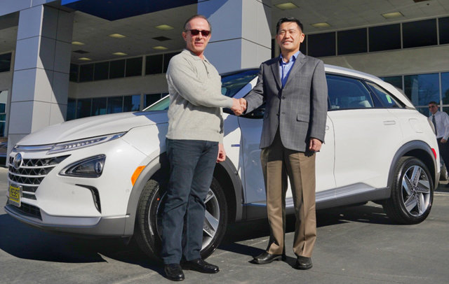 現代(ヒョンデ)自動車の水素燃料電池自動車(FVEV)ネクソ(NEXO)が最初の米現地客に渡された。