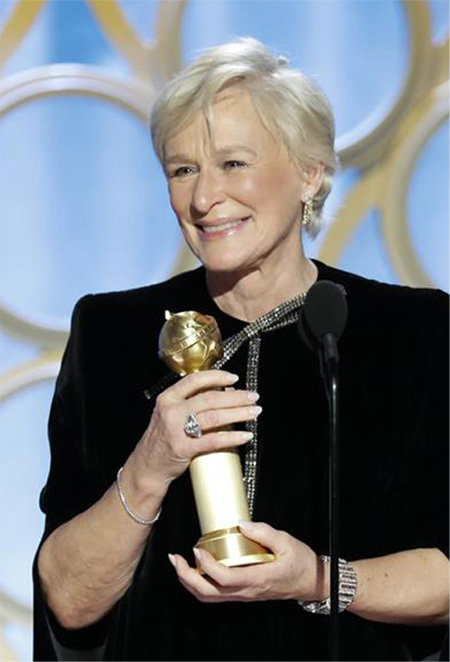 6日、2017年作「ザ・ワイプ(The Wife)」で主演を演じて6回ゴールデングローブ賞主演女優賞を受賞したグレン・クロース(72)。若い候補4人を抜いて、70代の女優としてはまれに主演賞を獲得した。特に「私たちはいつも養育者(nurturer)として生きてきた。今、私たちは自分の個人的達成と夢を追わなければならない。『私は挑戦できるし、誰も私の邪魔などできない』と叫びなさい」という受賞感想で盛大な拍手を受けた。