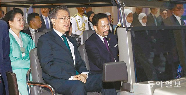 文大統領は同日、ブルネイのバンダルスリブガワン王宮で開かれた首脳会談で、「ブルネイは、韓国政府が力を入れて推進している新南方政策の重要なパートナー」と述べた。これに対してボルキア国王は、「今年が両国の修交35年を記念する年であるだけでなく、韓-ASEAN関係でブルネイが対話調整役をしている」とし、「今後さらに緊密に協力していくことを期待する」と述べた。大統領府は共同声明で、「ブルネイは、最近の韓半島情勢の進展における韓国の主導的な役割を評価した」とし、「両首脳は、肯定的な変化を進展させていくために対話のモメンタムを維持することが重要だという点を強調した」と明らかにした。