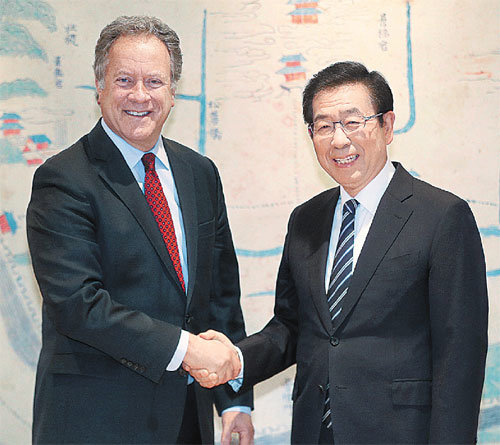 朴元淳(パク・ウォンスン)ソウル市長は14日、国連傘下機関である世界食糧計画(WFP)のデイビッド・ビーズリー事務総長に会って、北朝鮮の乳幼児をはじめとする脆弱層への食糧支援に協力したいと発表した。