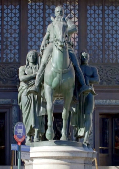 米紙ニューヨーク・タイムズは同日、ニューヨーク・マンハッタンの自然史博物館の東入口にある第26代セオドア・ルーズベルト大統領(1858~1919)の銅像が人種差別論議で撤去の危機にあると伝えた。1940年に建設されたこの銅像は、ルーズベルト大統領が原住民、アフリカ系黒人を間に置いて馬に乗って見下ろしている。撤去を主張する人々は、「人種的な位階秩序を表わす帝国主義の遺産だ。3者が皆平等に見えなければならない」と主張する。ルーズベルト大統領は政権2期の1906年、黒人兵士160人が暴力事件に関わったとし、彼らを不名誉除隊させた。当時、具体的な理由を提示せず、大きな論議を呼んだ。
