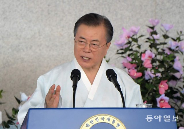 文在寅(ムン・ジェイン)大統領は15日、「いかなる危機にも毅然と対処してきた国民を思いながら、われわれがつくりたい国、『誰も揺るがすことができない国』を誓う」とし、「日本の不当な輸出規制に立ち向かい、責任ある経済強国への道を地道に歩んでいく」と述べた。反日ではなく平和経済による「克日(日本を克服する)」を強調し、経済はもとより安全保障でも「外勢に揺るがされない国」を新たな目標に掲げたのだ。