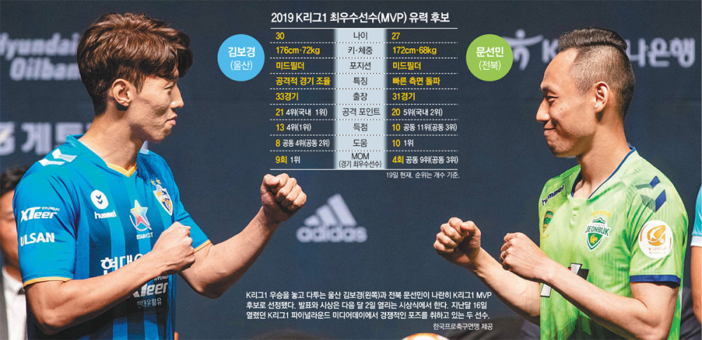 ムン・ソンミンは全北の攻撃の活力剤だ。チームの柱だった金信旭(キム・シンウク)が中国の上海申花に移籍した後は、ロペスとともにサイド攻撃をけん引した。10アシストで全体1位だ。とくに素早い突破を強みとするムン・ソンミンは、「別途スピード練習をしてはいない。だが、考えを早く切り替えれば体も早く反応するので、そういう所に意識しようとした」と話した。「信旭さんが抜けてからチームの攻撃オプションが変わったので、違う方式で攻撃をしかけようと、同僚たちも色々と研究をした」と語った。その上で「ロペスが自分によくチャンスを作ってくれているし、自分もロペスにもっとチャンスを作ってあげようとしながら、息を合わせようと努力している」キム・ボギョンとムン・ソンミンは、MVP候補に選ばれたことについて「チームの優勝が先だ」と語った。