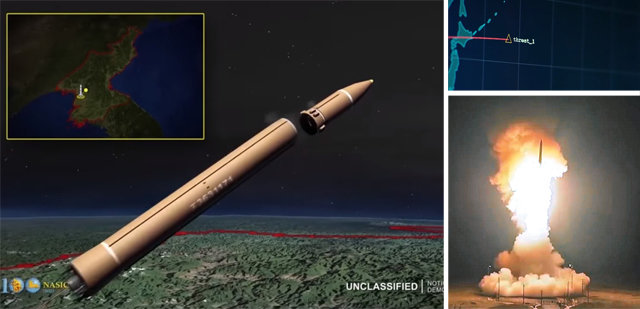 米空軍が2日(現地時間)、「未来への高速道路(Highway for the future)」というタイトルで、米国防映像情報配布システム(DVIDS)に掲載した1分間の映像には、北朝鮮がICBM「火星(ファソン)14」を発射する様子がある。このミサイルは、2段に分離した後、日本列島を越え、太平洋上空を通過して米国に向かって飛んで行く。映像は、北朝鮮のミサイル発射の様子と共に「世界は新しい行為者(new actor)とより一層複雑な脅威(more complex threat)に移動しつつある」と説明した。
