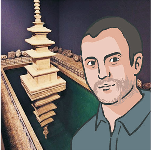 エルリッヒは、影を垂らして彼らを慰めたかった。だから作ったのが「塔の影」だ。彼の作品は、上から見れば、釈迦塔が水に影を落としている形状である。ところが下から見ると、影は、実際ではなく、逆に付けておいた塔だ。作家は二つの塔の間に3センチの厚さの透明なアクリル板を設置し、その上に水を満たした。だから上から見れば、下の塔が水に映った影に見える。錯視効果だ。彼はどこかをさまよっていたはずのアサニョの悲しい魂と愛する妻の死に空しく崩れたアサダルの心をそのような形ででも慰めたかったのだろう。異邦人の芸術家が、他国の伝説を思惟する方式が非常に温かい。