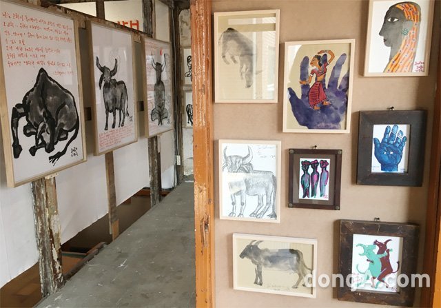 カン・ギョング、キム・ソンホ、キム・ウル、アン・チャンホン。4人の60代の「親友」作家たちは今年初め、インドに「スケッチ旅行」に出た。1月6日から22日までの半月余りの期間中、ジャイプール、ジャイサルメールを過ぎて、タール砂漠に入る旅だった。心地よい観光地より、人々に触れ合うことのできる市場や貧しい生活をする庶民の生活を見に足を向けた。昼間は一緒に旅をし、夜になれば、それぞれの部屋に入って絵を描いた四人の作家の結果物は、ソウル鍾路区通義洞(チョンノグ・トンウィドン)のホアン旅館で会うことができる。