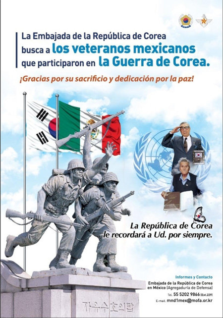 9日(現地時間)、駐メキシコ韓国大使館はホームページやフェイスブックなどのソーシャルネットワークサービス(SNS)に、「70年前に韓国のために戦ったメキシコの参戦勇士たちに感謝を伝えるために、彼らを探す」という内容のポスター(写真)を掲載した。地元の日刊紙にも、まもなく広告を出す計画だ。