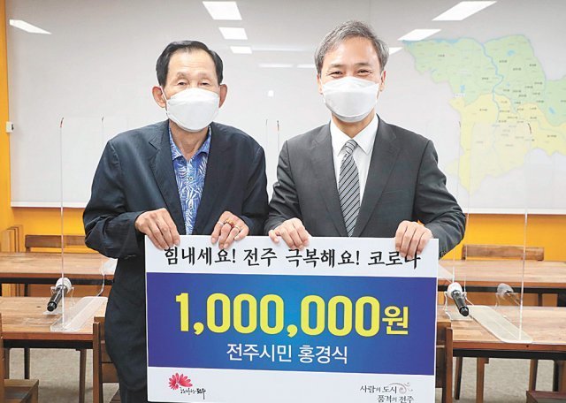 全羅北道全州市完山区中央洞(チョンラプクト・チョンジュシ・ワンサング・チュンアンドン)に住むホン・ギョンシクさん(78)は7日、全州市長室を訪れ、「新型コロナウイルスで苦しんでいる人のために使ってほしい」と100万ウォンを寄付した。100万ウォンは、ホンさんが寒さ暑さに耐えてこの8ヵ月間、午前4時から街頭で古紙を拾って1円、2円集めてつくった。