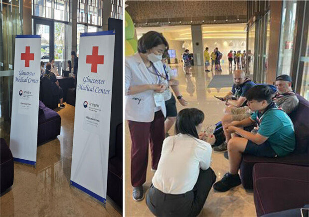 글로스터 메디컬 센터는 영국 단원들의 숙소인 서울 용산구 드래곤시티 호텔 1층 로비에 마련됐다. 뉴대성병원 윤병로 원장이 자원봉사로 진료를 시작한 뒤 찾는 대원이 늘자 고려대 안암병원 의료진도 합류했다고 한다. 치료가 시급한 벌레 물림과 화상 등 피부과 전문 진료를 비롯해 가정의학과 진료 등이 이뤄지고 있다. 8일 하루 동안 23명의 영국 잼버리 대원과 3명의 카타르 잼버리 대원이 진료를 받았고, 남은 기간 더 많은 대원이 찾을 것으로 보훈부는 보고 있다. 8일부터 진료를 시작한 메디컬 센터는 11일까지 오전 10시∼오후 5시 운영된다.