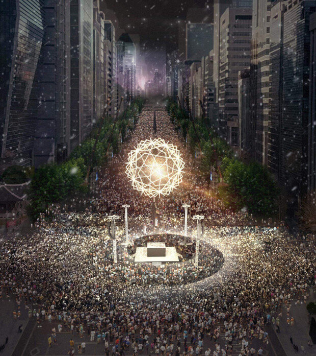2024년 새해 첫날 0시에 서울 종로구 세종대로에 지름 12m의 초대형 구조물 ‘자정의 태양’이 떠오른다.