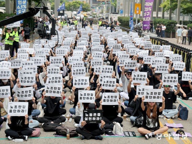 노조 측은 이날 집회에 민노총 금속노조 소속 조합원 200명이 질서유지인으로 참석한다고 경찰에 신고했다. 전삼노는 한국노총 산하지만, 집행부가 최근 유튜브를 통해 “싸움을 하려면 힘센 조직과 함께해서 삼성의 자본과 싸워야 되지 않겠냐”며 민노총 측 지원을 밝혔다.