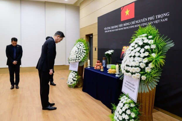 최태원 SK그룹 회장 겸 대한상공회의소 회장은 전날 베트남대사관을 찾아 조문했다. 최 회장은 조문록에 “베트남의 번영을 위해 헌신하신 서기장의 영면을 기원한다. 유가족과 베트남 국민에게 깊은 애도와 추모의 뜻을 전하며 앞으로도 베트남의 발전에 한국 경제가 든든한 동반자가 되겠다”고 적었다. 신동빈 롯데그룹 회장도 같은 날 조문했다.
