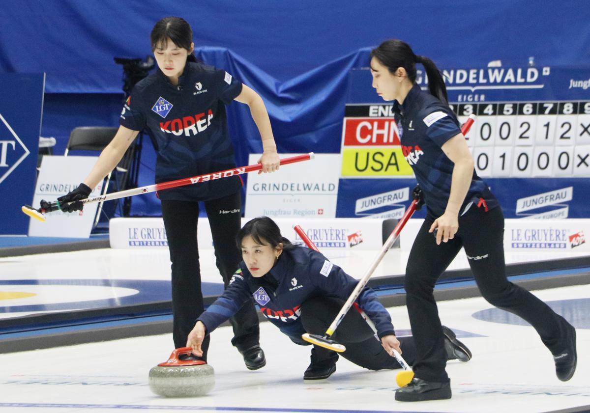 スキップのキム・ウンジ、サードのキム・ミンジ、セカンドのキム・ミンジ、リードのソル・イェウン、ピップのソル・イェジで組まれた京畿道庁(世界ランキング10位)は19日、京畿道議政府(ウィジョンブ)スケートリンクで行われた2025カーリング女子世界選手権の予選リーグ第7戦で、スキップのレイチェル・ホーマン率いるカナダを11-7で破った。韓国は第5エンドまで3-3で拮抗した試合を続け、第6エンドで3点を獲得して勝機をつかんだ。