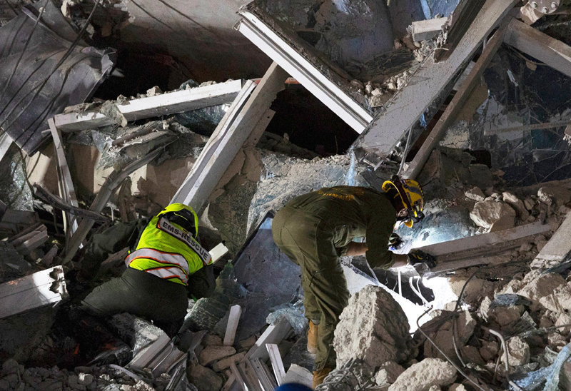 28日午後、ミャンマー第2の都市マンダレーを襲ったマグニチュード7.7の地震の影響で崩壊したこの建物は、今回の地震がいかに強力であったかを象徴的に示している。まだ埃が立ち込める現場では、無人機(ドローン)、探知犬、クレーン、掘削機などを動員したタイ政府の捜索活動が行われていた。現場作業員約400人のうち少なくとも8人(地震による全体の死者は17人)が死亡し、83人が行方不明になった。周辺を通りかかった外国人観光客は、「世界的な観光地であるバンコクで、こんな恐ろしいことが起こるとは思わなかった」と話した。
