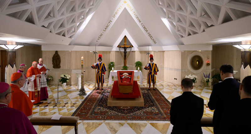 教皇は2022年6月29日、生前の住居であるサンタ・マルタの自宅で作成した遺言で、「地上での生涯の黄昏(たそがれ)が近づいているのを感じながら、そして永遠の命への確かな希望を抱きつつ、自らの埋葬場所に関する最後の望みだけをここに記す」と書いた。埋葬地をサンタ・マリア・マッジョーレ大聖堂に選んだことについて、「わたしの生涯と司祭・司教としての務めを、主の母マリアに、聖母に、常にゆだねてきた。それゆえ、復活の日を待ち望むわたしの亡骸を、サンタ・マリア・マッジョーレ大聖堂で休らわせてくれることを願う」と記した。歴代教皇265人のうち、148人がバチカンのサンペトロ大聖堂に埋葬されている。