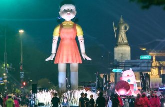 公開翌日の28日、ソウルの光化門(ウァンファムン)広場とソウル広場付近では「イカゲーム」フィナーレイベントが約1時間半にわたり開催され、市民の注目を集めた。シリーズの象徴である「ピンクガード」数十人が銃の代わりにトランペットを吹き、ドラムを叩きながら行進した。主人公ギフンの参加番号「456」が書かれた緑のジャージを着た人々が童謡「まるくまるく」に合わせて踊った。巨大に作られた殺人マシン「ヨンヒ」も登場し、「だるまさんがころんだ」を歌って不気味な緊張感を演出した。