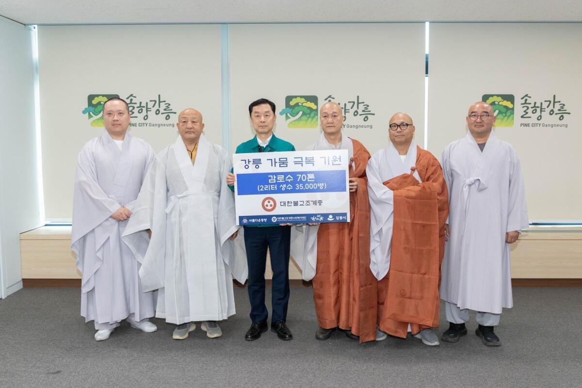 宗教界からの支援も続いている。大韓仏教曹渓宗(チョゲチョン、総務院長・ジンウ僧侶)は8日、江陵市庁で干ばつ克服のためのミネラルウォーター70トン(2リットル入り3万5千本)を届けた。贈呈式には、曹渓宗「美しい同行」常任理事のポプオ僧侶、曹渓宗社会福祉財団事務局長のトクウン僧侶、江陵仏教寺庵連合会長のソルアム僧侶、月精寺のトクオム僧侶、江陵布教堂観音寺のフェヒョン僧侶、キム・サンヨン江陵副市長らが出席した。ポプオ僧侶は「江陵の干ばつが解消され、一日も早く市民の生活が安定することを願う」とし、「曹渓宗は今後も災害現場で分かち合いを積極的に行う方針だ」と述べた。