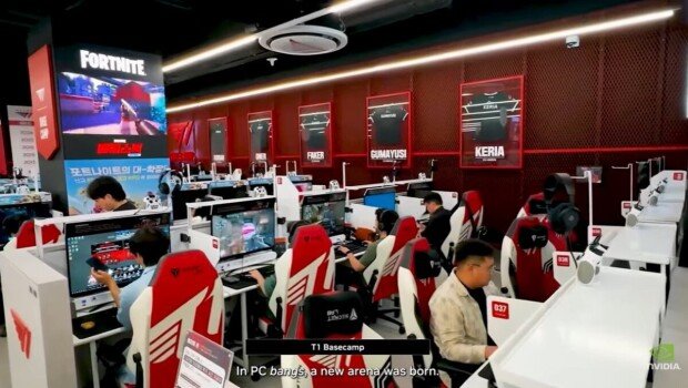 이어 영상은 “그리고 하나의 불꽃이 피어났다. 바로 스타크래프트”라며 1990년대 PC방 돌풍으로 시작해 e스포츠 강국이 된 한국을 조명했다. 엔비디아는 “PC방이라는 새로운 경기장이 탄생했고 엔비디아 지포스는 새로운 플레이어들의 장비가 됐다”고 전했다. 지포스는 엔비디아가 1999년 출시한 GPU다.